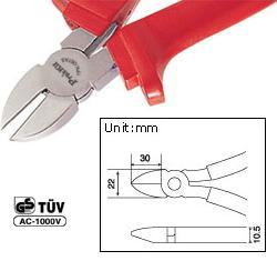Высококачественная сталь, изоляция на рабочее напряжение до 1000В, TUV, индукционная закалка режущих кромок, применение: медный провод 2.6мм, мягкая сталь 2.0мм, твердая сталь 1.2мм, длина 165мм