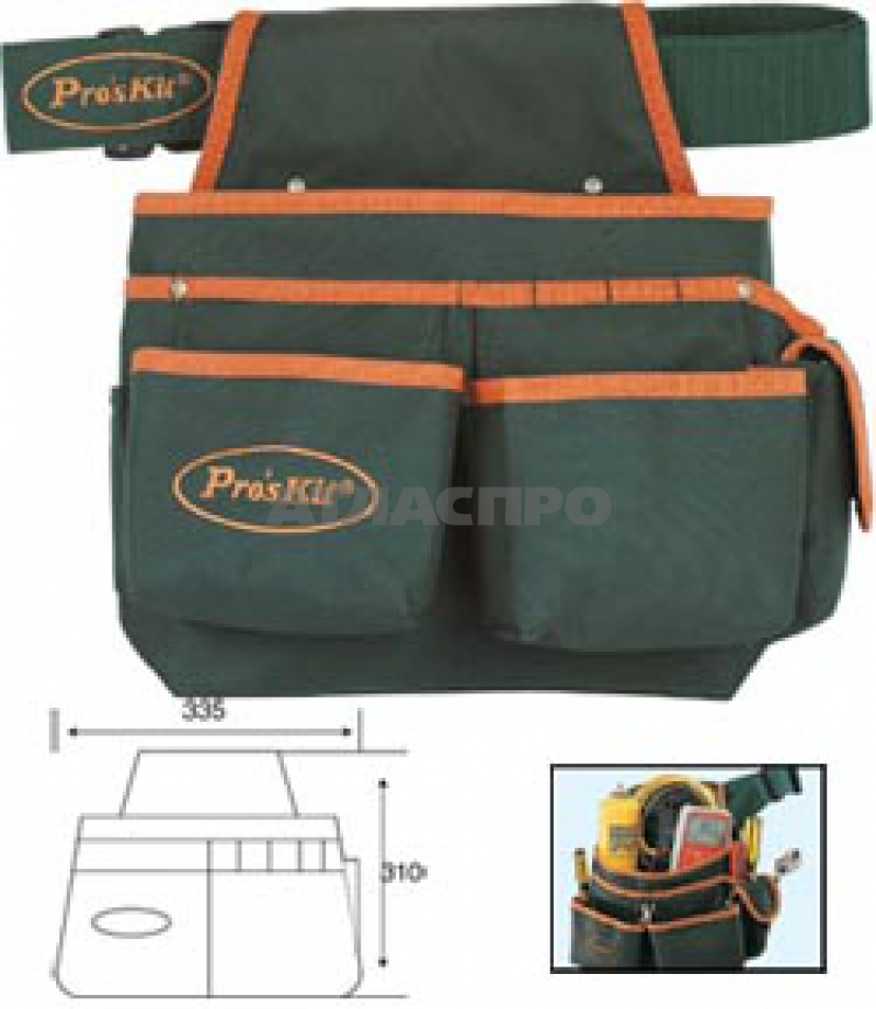 материал: полиэстер 600D размер: 335х310 мм, вес-370гр., мест для установки-13, крепление на пояс.