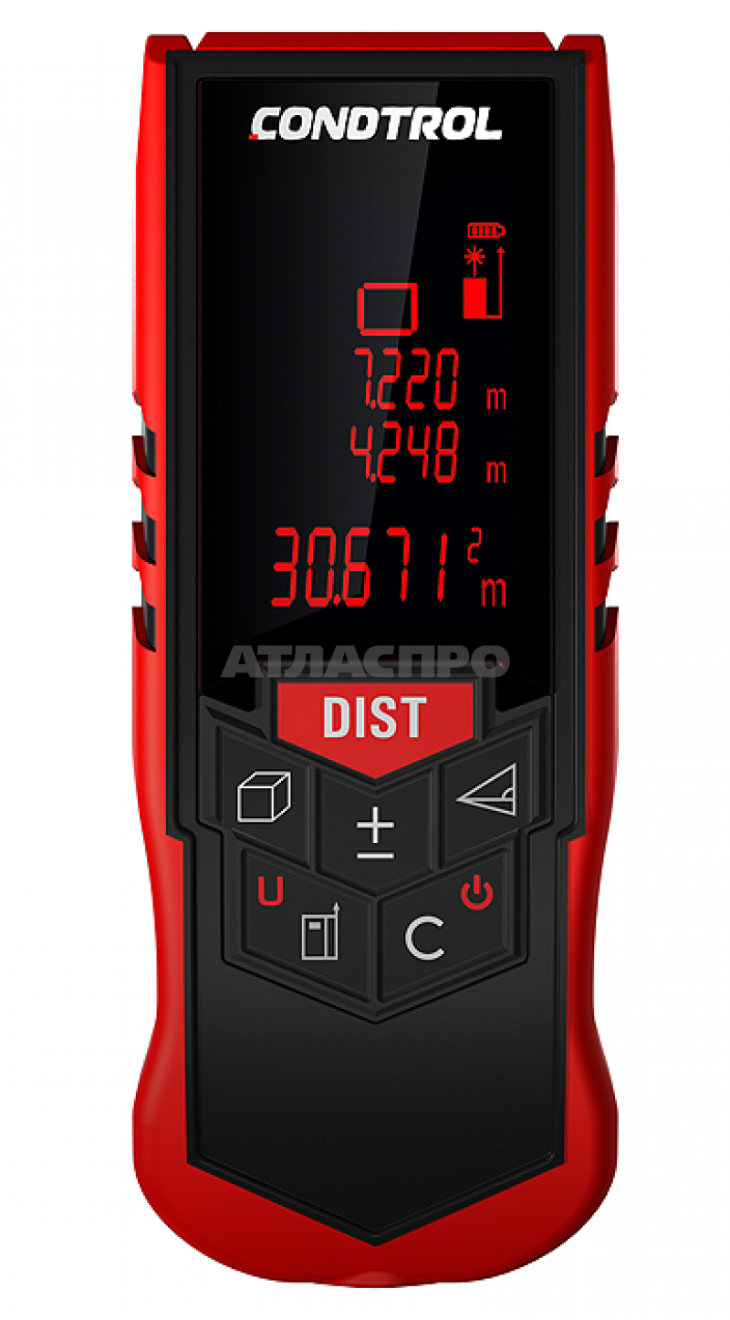 Помимо стандартных функций, таких как сложение, вычитание, измерение площадей и объемов, лазерный дальномер CONDTROL X2 Plus имеет дополнительные функции: вычисление площади стен, расширенную функцию Пифагора, режим MIN-MAX, вычисление углов наклона строительных конструкций.