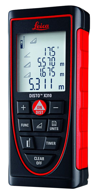 Лазерный дальномер Leica DISTO X310 новая компактная и удобная модель начального уровня. Имеет много интересных функций и прост в использовании. Сложение и вычитание, вычисление площади, объема и периметра, измерения угла между стенами по трем сторонам треугольника, измерение угла уклона, функции Пифагора (2 варианта), а также функция выноса размера в натуру для быстрого и точного измерения. В памяти дальномера можно сохранять до 20 результатов измерений.