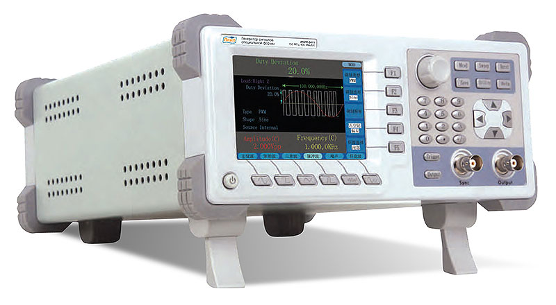 Диапазон частот: 1 мкГц – 150 МГц (синус), 1 мкГц – 50 МГц (меандр), 1 мкГц – 25 МГц (импульс), 1 мкГц – 1 МГц (пила), до 50 МГц (шум)