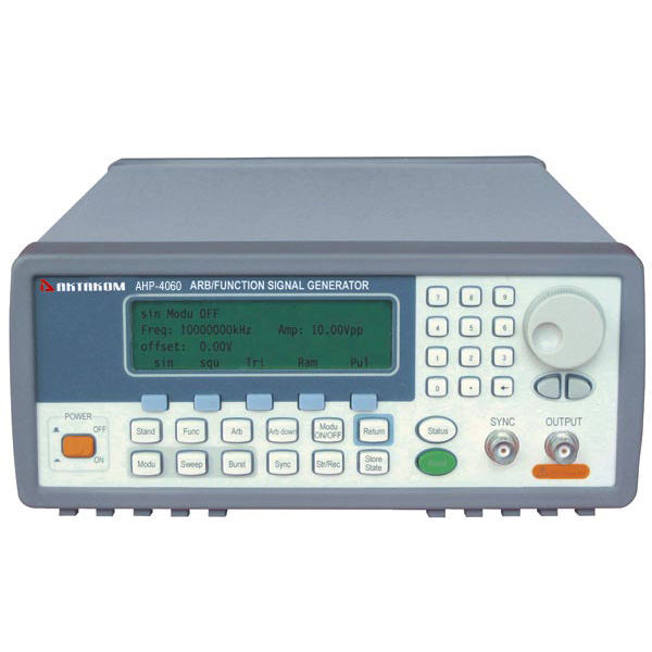 - Форма выходного сигнала: синус, прямоугольник, импульс, треугольник, лестничный, пилообразный, произвольный, кардиограмма, sin(x)/x, шум, экспонента, логарифм и пр.