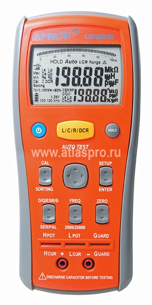 В обоих измерителях APPA серии 700 реализована уникальная инновационная технология автоматического выбора режима измерений между L / C / R (с одновременной индикацией параметра Q/D), в зависимости от типа подключаемого компонента (радиодетали). Достаточно только включить прибор и подключить объект измерений к входным гнёздам – всё остальное прибор сделает за вас. При необходимости пользователь может выбрать требуемую схему замещения или изменить параметры теста: частоту и уровень сигнала. Кроме того, модель APPA 703 измеряет фазовый сдвиг между напряжением и током.