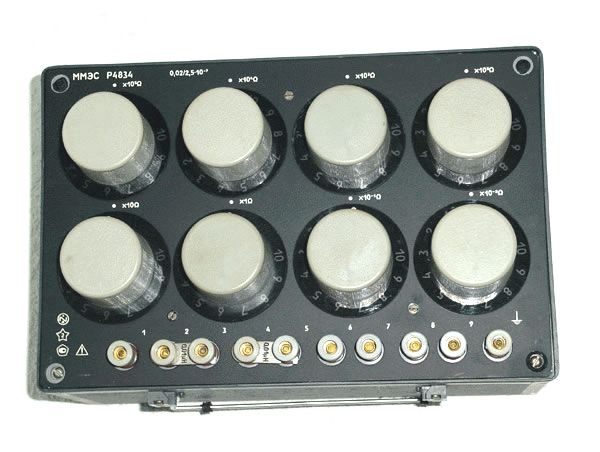 Магазин сопротивлений: 0.01 Ом - 999999,99 Ом, 8 декад, кл. точности 0.02/2,5*10-7, масса 5 кг