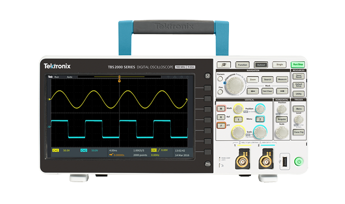 Осциллографы серии TBS2000 с 9-дюймовым дисплеем WVGA, длиной записи 20 млн. точек и частотой дискретизации 1 Гвыб/с могут захватывать сигнал и отображать его в увеличенном временном окне, что позволяет ускорить анализ проектируемых устройств. Простота и достоверность анализа сигналов с помощью новых курсоров экрана и 32 автоматических измерений достигаются за счет использования подсказок, которые облегчают выбор необходимых настроек. Интерфейс подключения пробников TekVPI ® работает как с обычными пробниками с разъемами BNC, так и с новейшими активными пробниками напряжения и токовыми пробниками, используемыми в широком круге приложений.