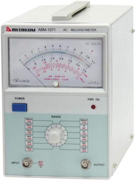 Аналоговый милливольтметр: измерение напряжения 300 мкВ...100 В, измерение в дБ: –70...40 дБ, стрелочная шкала, питание 220 В, габаритные размеры 125x185x270 мм, масса 2,7 кг