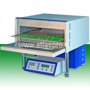 Печь предназначена для автоматизированной пайки печатных узлов радиоэлектронной аппаратуры с применением любых паяльных паст. Инфракрасный и конвекционный методы передачи тепла в комбинации обеспечивают равномерный, щадящий нагрев ПУ, исключающий появление теневых эффектов. После отработки термопрофиля производится автоматическое охлаждение до заданной температуры.