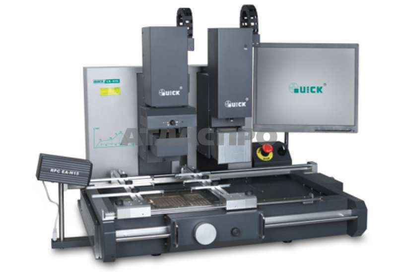 QUICK EA-H15 - паяльно-ремонтный комплекс повышенной мощности для пайки и выпаивания различных компонентов, выполненный в интегрированной конструкции. Комплекс является обновленной версией комплекса QUICK BGA2015 и состоит из инфракрасной ремонтной станции QUICK IR EA-H15, лазерной системы высокоточного монтажа QUICK PL EA-H15, камеры визуализации QUICK RPC EA-H15.