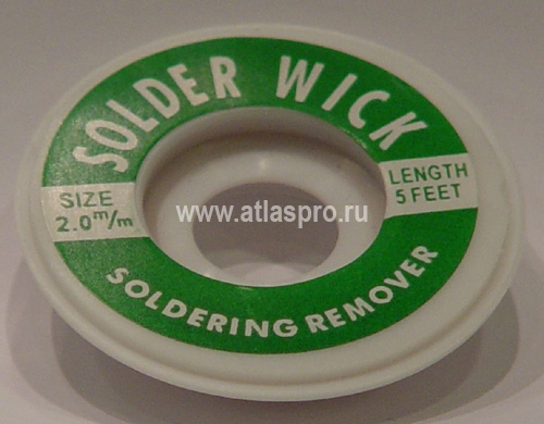 Впитывающая припой медная плетеная лента, используемая для очистки контактных площадок от припоя; ширина 2 мм, длина 1,5 м.