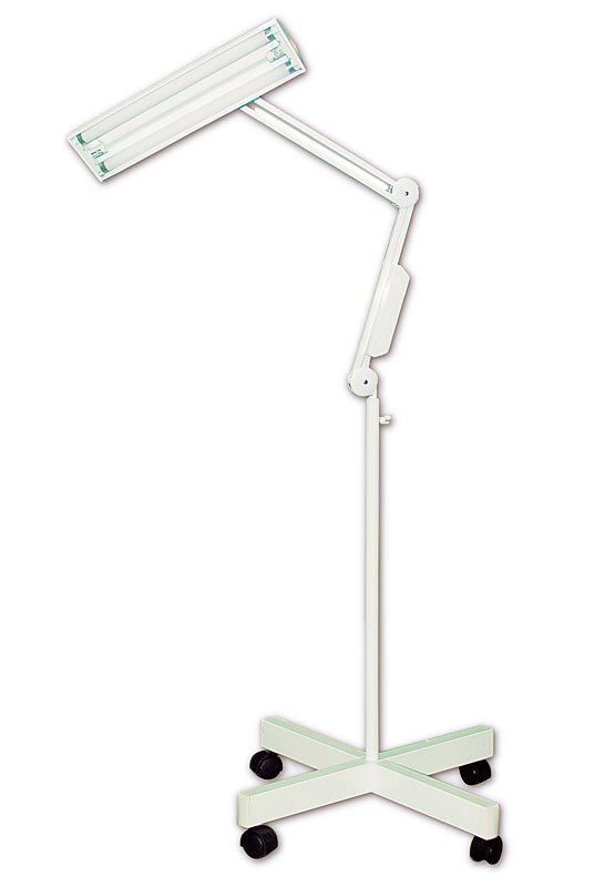 Светильник бестеневой , напряжение питания 220-240 В, две люминесцентные лампы по 15 Вт. Пантографический механизм, напольная мобильная стойка. Цвет: белый.